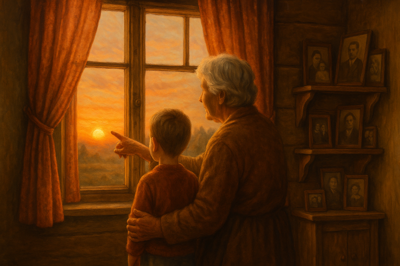 Однажды я почему-то проснулся необычайно рано, солнце еще не взошло. Я вышел в общую комнату и не знал, чем себя занять. Проснулась и бабушка, которую я вероятно разбудил. Мы о чем-то говорили, и в какой-то момент она сказала:
